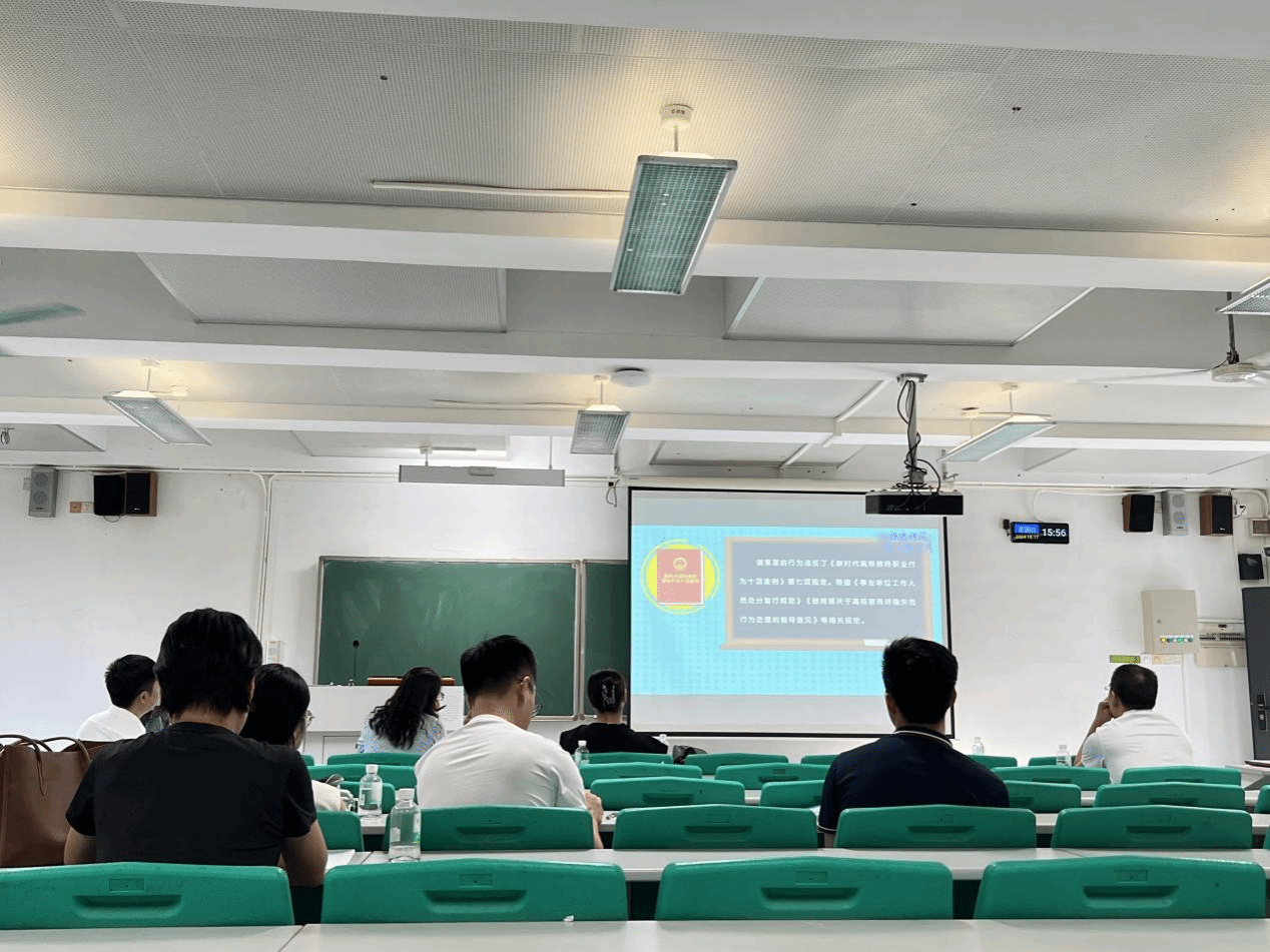 会议最后,全体教职工观看了师德师风警示教育片。希望全体老师坚决做到依法执教、廉洁从教,树立良好的教师形象,做到知准则、守底线,做到警钟长鸣。