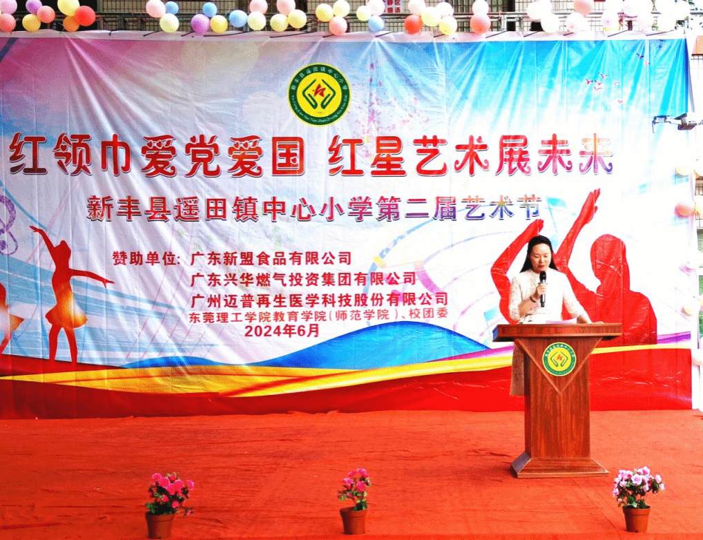 为了进一步贯彻落实广东省委关于“双百行动”部署,响应“村有所需,莞工所能”,2024年6月13日,公司副经理黄琼带领艺术小分队师生前往韶关市新丰县,与遥田镇中心小学的小演员们携手参演“红领巾爱党爱国 红星艺术展未来”遥田镇中心小学第二届艺术节活动。出席本次活动的有广东省人大人事处驻遥田镇工作队队长陈巍,双百行动驻县服务队队长、县委办副主任陈礼明,遥田镇党委政府、派出所,学校家委会、师生等一千多人。