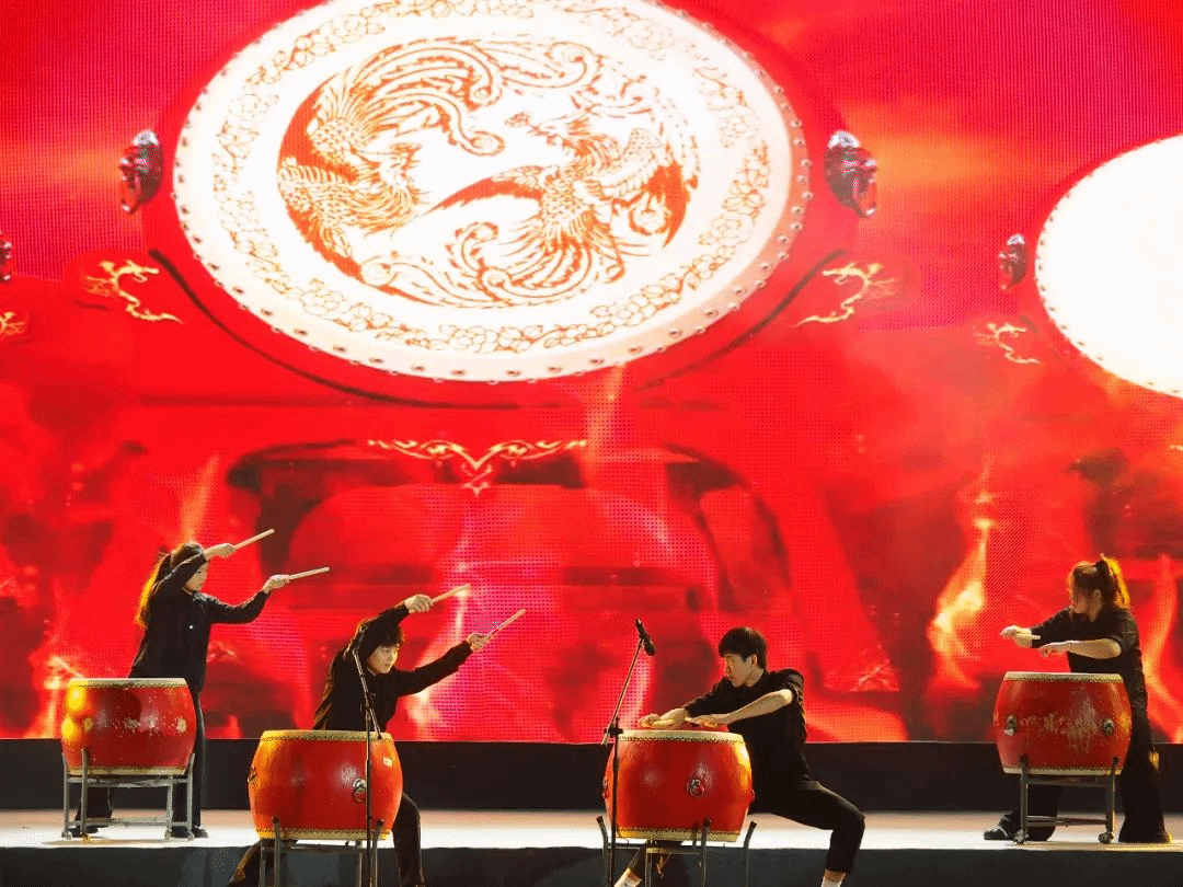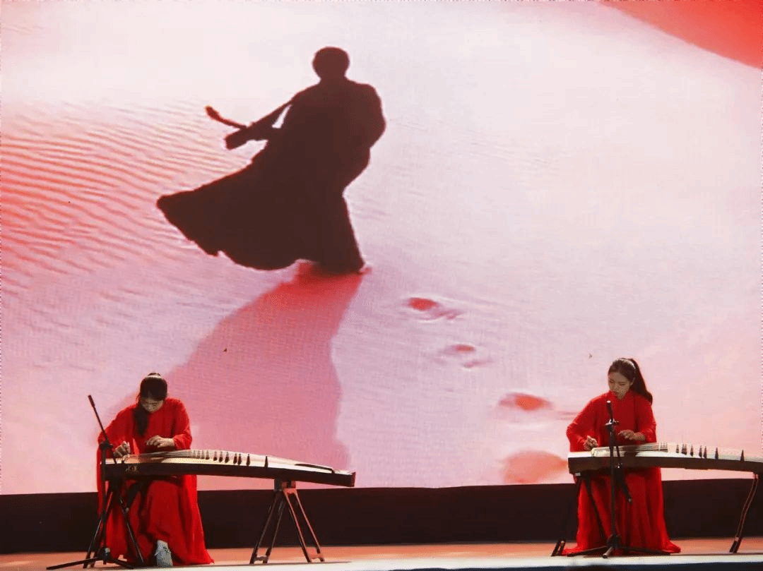 音乐会集音乐、舞蹈、打击乐等节目于一体,在强劲有力的打击乐《鼓舞》中拉开序幕,大鼓的震撼声响和鼓手们的激情演绎瞬间点燃了现场氛围。随后,舞蹈《龙·耕》以生动的形式展现了农夫们在广袤田野上辛勤劳作的场景,表达了他们对未来的美好憧憬。古筝重奏《行者》则巧妙地将传统古筝技法与现代创新思维相融合,为观众带来了耳目一新的听觉体验。打击乐《牛斗虎》以其独特的节奏和表现力,呈现了牛与虎激烈争斗的壮观场面,赢得了现场观众的阵阵掌声。舞蹈《江格尔》则以浓郁的草原风情和群像的视觉冲击,将观众带入了一个充满故事与情感的草原世界。此外,交响管乐与独唱《绒花》《如愿》等节目,也以深情的旋律和动人的歌词,歌颂了革命精神、奉献精神。