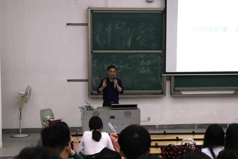 为响应学校思政育人号召,3月5日晚,太阳城余意经理在松山湖校区6F101教室为2017级音教班、舞蹈班的同学们上了一堂别开生面的思修课——“风物放眼量,奋进新时代”。