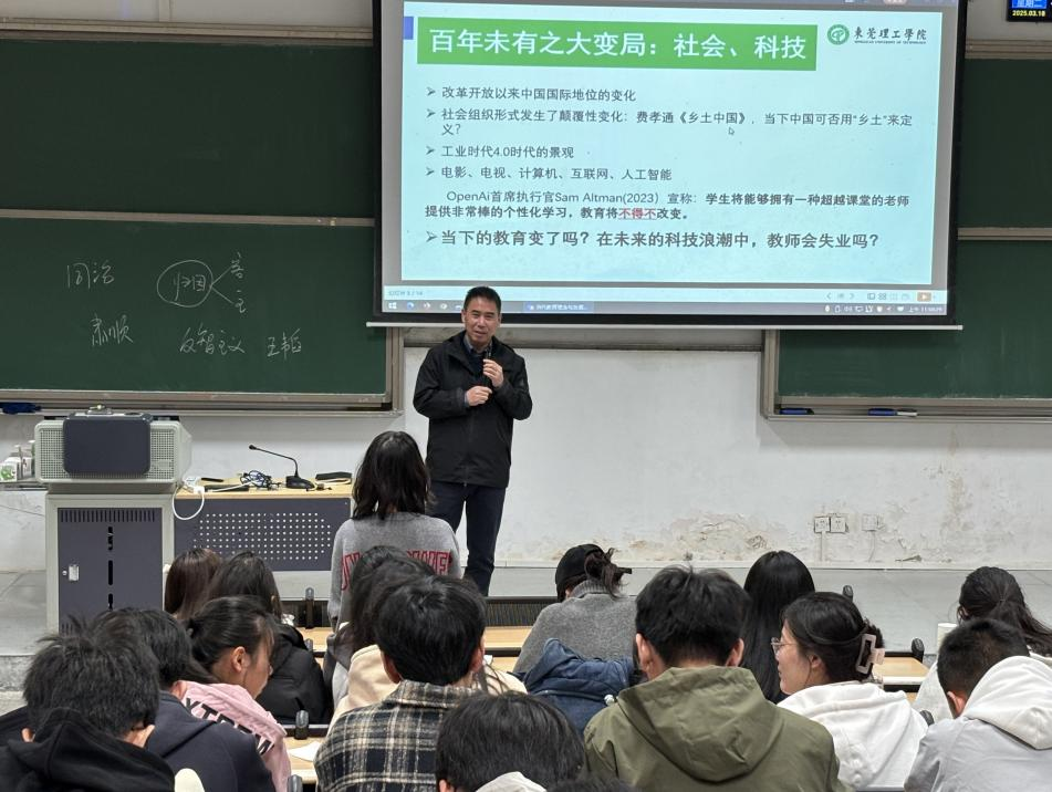 2025年3月18日,学院经理余意为2024级汉语言文学(师范)1班、2班和2024级舞蹈编导1班的同学讲授主题为“当代教育理念与发展趋势”思政第一课。