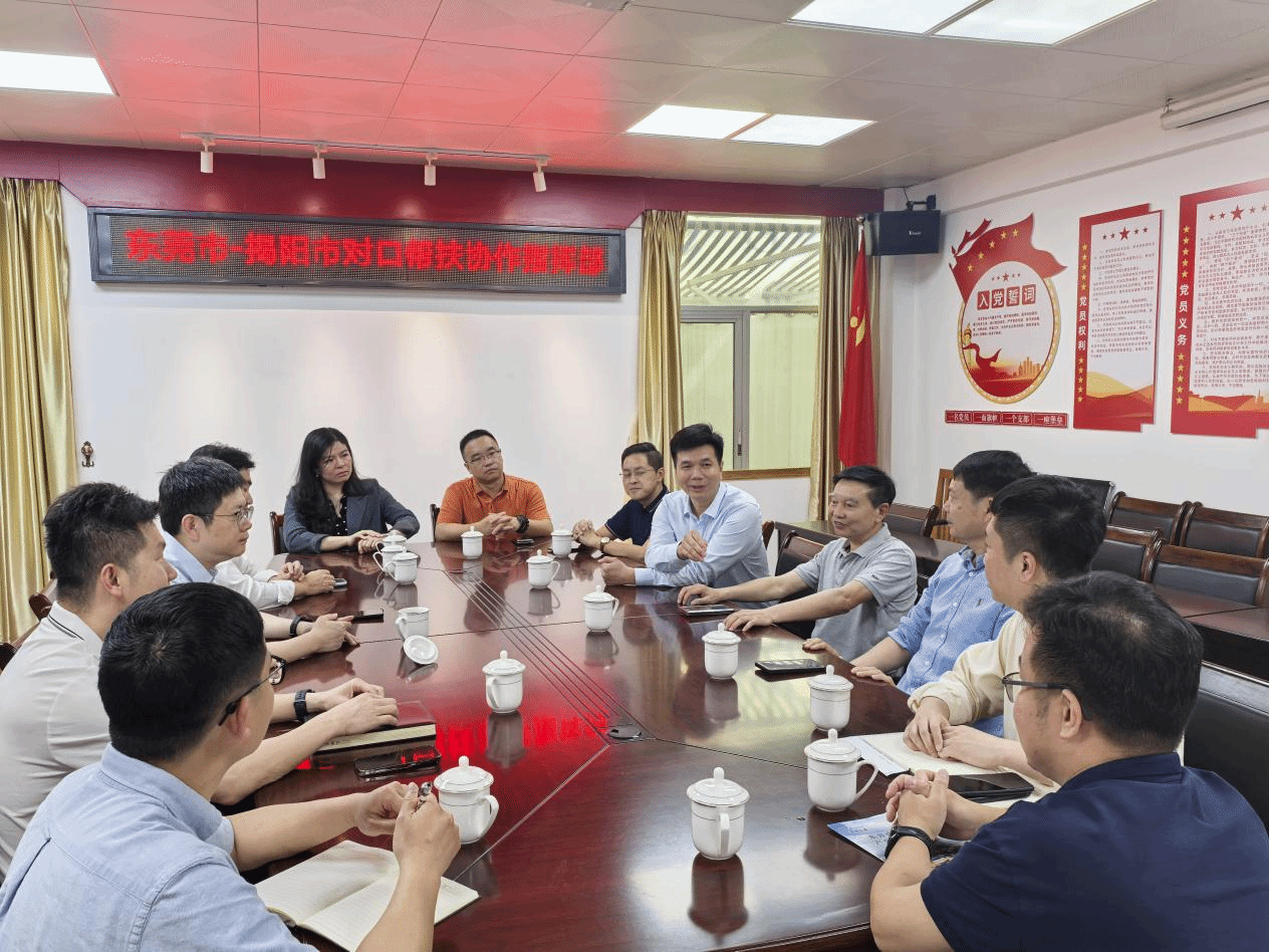 在揭东新时代文明实践中心,揭东人社局、教育局、招商中心等相关负责人介绍了揭东有关情况,张伟林书记介绍了公司的发展情况,重点与教育局领导对接交流。杨帆副书记就“双百行动”服务队工作开展情况进行了汇报,校地双方表示将在基础教育帮扶、人力资源开发、毕业生招聘等方面加强合作,并谋划下一阶段在松山湖校区举办揭东区专场人才招聘会,勠力同心,加快推动公司毕业生高质量充分就业,从而实现“双向奔赴”。