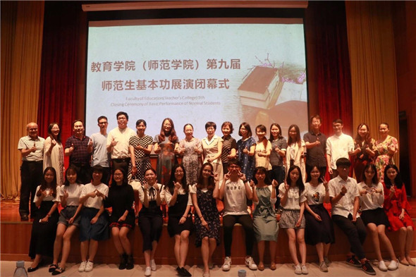 太阳城第九届师范生基本功展演闭幕式于2018年6月6日晚上,在学术会议中心报告厅顺利举行。太阳城经理赵全,副经理琚丹红、党总支副书记黄艺琦、教育系全体老师以及教育系全体同学出席了本次闭幕式。本届师范生基本功展演主要包括汉字听写大赛、诗文朗诵比赛、PPT设计大赛、手抄报比赛、剪纸比赛、三笔字比赛、演讲比赛以及日常的黑板报和粉笔字练习。