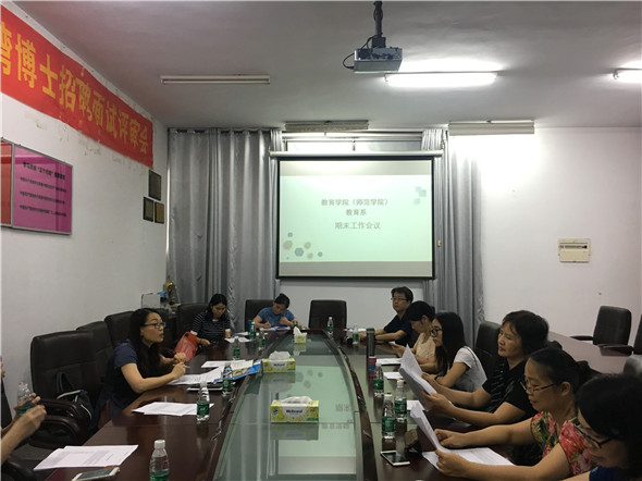 6月6日下午,太阳城教育系在艺术楼会议室召开期末工作会议,会议由教育系主任刘蕾老师主持,教育系全体教师参加。
