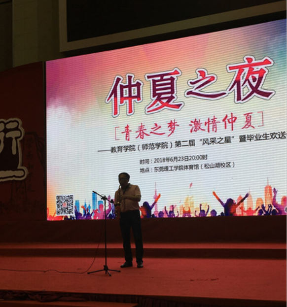 接下来,由杨万江书记演奏的萨克斯独奏串烧《相逢是首歌》引起了现场观众热烈的掌声。最后,由17级汉师2班的同学表演的情景剧《我们的青春》将晚会气氛推向了高潮。