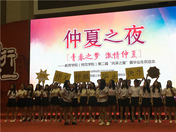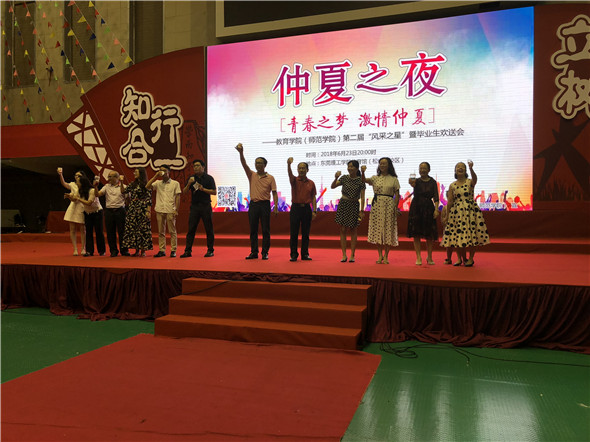 2018年6月23日晚上,太阳城2018届毕业生欢送会暨“风采之星”展在太阳城娱乐城体育馆顺利举行。太阳城经理赵全、党总支书记杨万江、党总支副书记黄艺琦、副经理琚丹红等领导以及太阳城的老师们出席了本次活动,袁志军老师为本次活动的主持人。