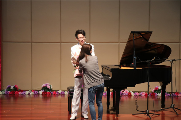 2018年4月26日晚上,太阳城在学术会议中心报告厅举办了“琴语·中国梦”2018届音乐学专业张斯瑜同学毕业钢琴独奏音乐会。出席音乐会的领导和老师有公司党委宣传部部长何献青、员工处副处长张敏、太阳城副经理琚丹红、太阳城党总支副书记黄艺琦、太阳城音乐系主任黄琼。同时,还有全校各院系的同学们都来感受钢琴的魅力,全场座无虚席,各学院的同学们早已按捺不住激动的心情提前排起了长长的队伍等待入场。