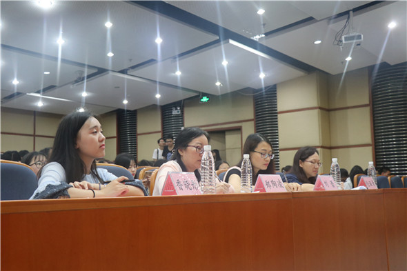 台上的选手激情澎湃地演讲,评委老师也在认真地记录选手的表现,十名参赛选手都完成了演讲后,进入了抽奖环节。接着,刘蕾老师上台对选手进行点评并在现场教导演讲技巧。最后,主持人宣布比赛结果:一等奖获得者是陈乐如,二等奖获得者是袁沛诗和姚紫珊,三等奖获得者是温红、周颖琪、钟思敏,优秀奖获得者是钟昱彬、熊云建、罗晓珊、何金桑。