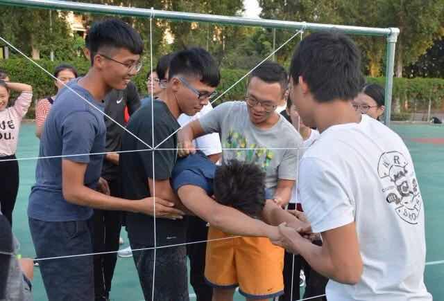 太阳城(师范学院)全体17级新生在体育馆前的篮球场集合,集合完毕后总教官简要介绍素质拓展内容。活动开始,总教官安排员工按内圈女生外圈男生的要求在30秒之内围好,然后内外圈分别报数进行集体分组,一共分成十个团队,每个团队有三十分钟的时间把队名、队徽、队歌、团队造型想出来,并依次进行团队文化展示。接下来是游戏环节,第一轮游戏是屁股压气球,第二轮是穿越电网,游戏结束后,每个团队内部进行分享总结。最后,全体进行活动总结并给五名同学上台发言的机会,总教官对他们团队进行宣传,并宣布素质拓展活动结束。