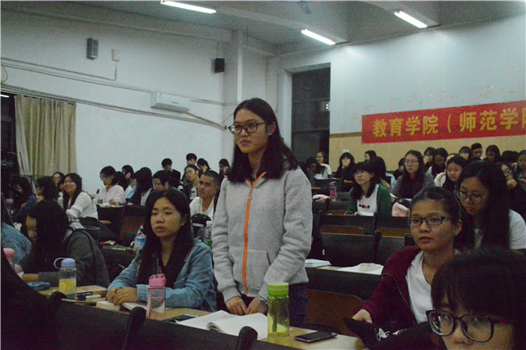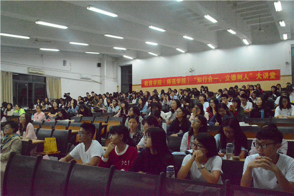讲座开始,主持人简单地介绍了曾明了老师,引导曾明了老师的出场,曾明了老师一出场便为我们阐述了讲座的中心——读书,读好书,好读书。曾明了老师从如何培养阅读习惯、如何读书、读好书的意义与影响等方面出发,结合自身的知青经历,为我们阐述了读书对道德修养培养的重要作用与意义,从而阐述了读好书的必要性。讲座最后曾明了老师以毛泽东的话语对今晚的讲座进行了总结,再次强调了读好书的意义。