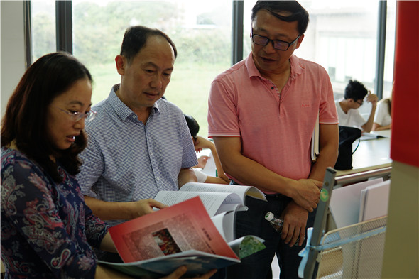 马宏伟副董事长翻阅员工编印的《阅读与写作》课程文集