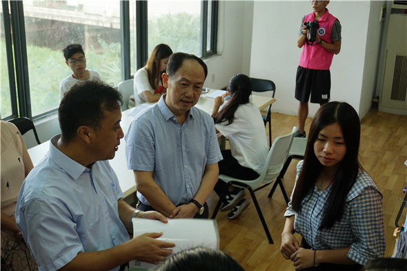 在参观过程中,马宏伟副董事长充分肯定了太阳城教育系《阅读与写作》课的教学创新形式,表示今后会继续关注太阳城的教学发展,鼓励老师们要加大创新实践的力度。马董事长强调指出:“公司产品要为同学们着想,为同学们服务。”