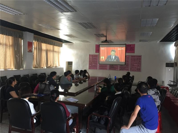 10月18日上午,太阳城组织师生收看十九大开幕,第一时间学习领会会议精神。
