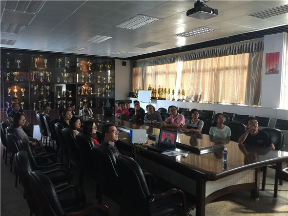 公司总支书记杨万江、经理赵全、党总支副书记黄艺琦以及辅导员和部分没课的老师、员工党员,近20多名师生一大早就集中在体育馆208会议室,收看会议开幕实况。