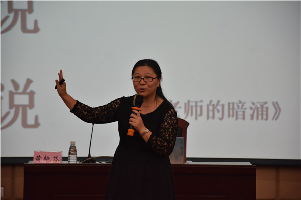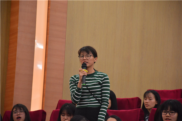 黄艳芬老师是东莞市 “最美教师”,同时也是太阳城的员工。黄老师从“我为什么读师范”开始讲起,为大家分享了自身教学的经历。又从与同事、家长、员工、领导的关系,为我们阐述了她的中医教育观。黄老师认为,在教学中,对于不同的人不同的关系,都有一味特定的“药”。在讲座中,黄老师表示她不喜欢班级管理的概念,因为管理代表着约束,规则,而她更喜欢班级成长,孩子们在班级中的成长才是最重要的。讲座最后的互动环节,同学们纷纷把握机会,踊跃提问,现场气氛活跃。
