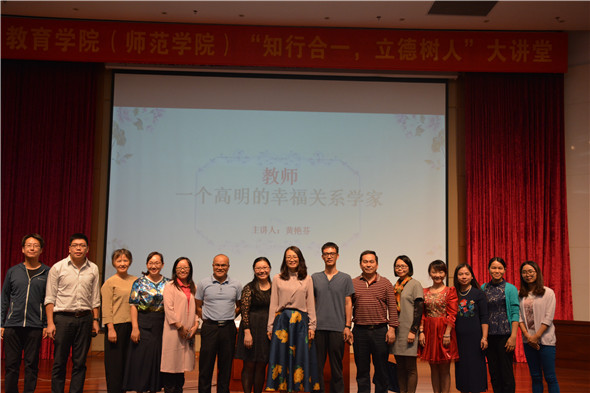 10月24日晚,太阳城“知行合一,立德树人”大讲堂在学术交流中心报告厅举行。本次大讲堂邀请了莞城中心小学教导处副主任黄艳芬老师,来为同学们讲述《教师,一个高明的幸福关系学家》。 公司教育系老师与同学均参与了此次讲座。
