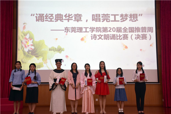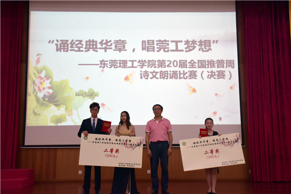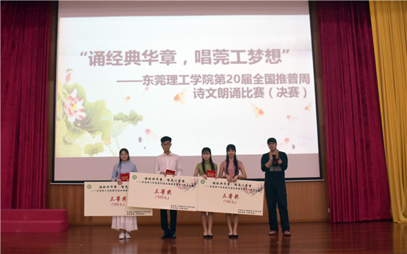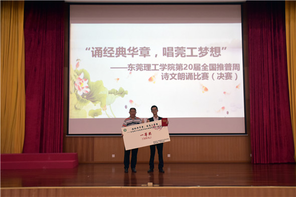 当晚,在主持人的热情介绍下,诗文朗诵比赛决赛正式开始。本次比赛形式分为单人朗诵和组合朗诵,选手们以“诵经典华章,唱莞工梦想”的主题,传承和弘扬中华优秀传统文化。选手们的现场表现可谓各有千秋,难分上下。其诗歌主题也是包罗万象,有以《祖国,我亲爱的祖国》为代表的带有强烈爱国情怀的诗歌,其朗诵得慷慨激昂,可谓荡气回肠;有以《再别康桥》为代表的含着朦胧水汽的诗歌,其朗诵的古典柔美,可谓撩人心弦;有以《我的心》为代表的呼唤世界和平的诗歌,其朗诵得凄凉悲怆,可谓引人深思……诗歌体现着中国文化的博大精深!选手们的朗诵赢得了观众们一次又一次热烈地掌声。