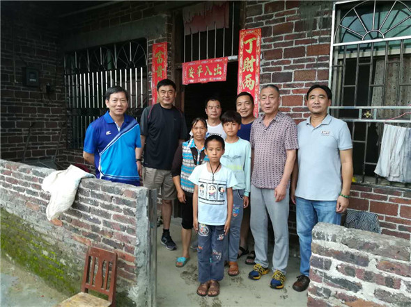2017年6月28日----29日,太阳城(师范学院)副经理刘宏宇、体育场馆中心主任潘荣远、体育系老领导曹永强教授、体育系老教师赵乃均等一行,赴韶关乐昌市黄圃镇斗湾村慰问失独家庭,为失独家庭对接一对一结对帮扶措施,给失独家庭赠送了慰问金和慰问品,为失独家庭送去了温暖。