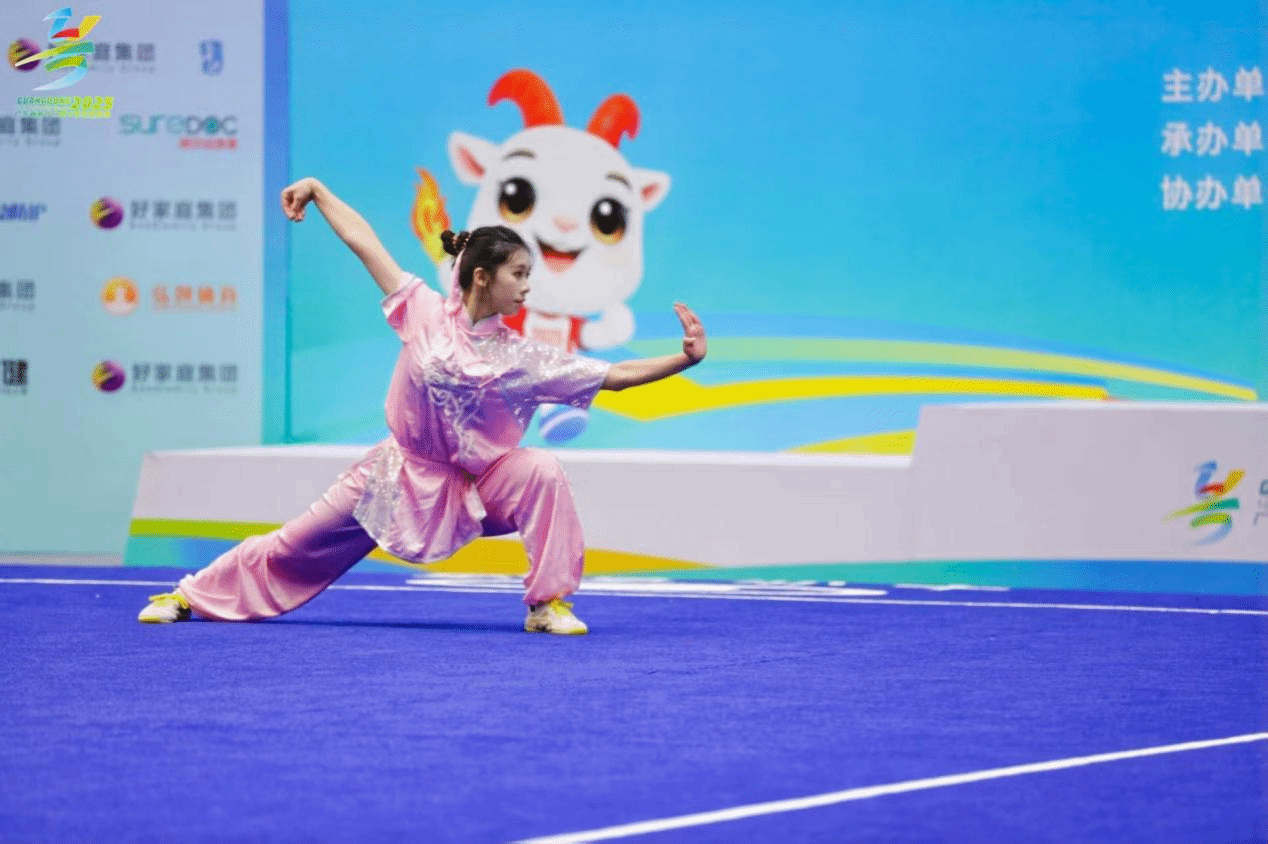 在首日进行的女子甲组自选长拳项目中,公司武术队健儿吴楚诗以飒爽英姿技惊四座。在领队潘荣远、主教练张恒、助理教练肖卫、王玉超组成的教练团队指导下,这位00后小将凭借行云流水的身法、干净利落的动作,刚柔并济的完美演练,最终以9.003分的绝对优势摘得桂冠。吴楚诗又在18日获得女子甲组刀术银牌。一金一银的佳绩,不仅实现她个人武术生涯的重大突破,更为公司斩获本届省大运会首枚金牌!