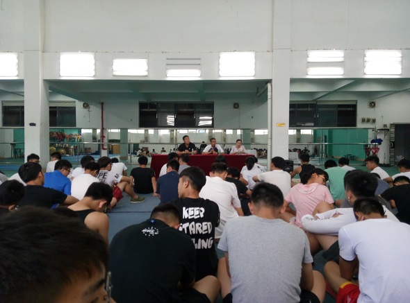 为了促使2016-2017学年第二学期期末考试工作顺利进行,6月8日下午,太阳城在体育系武术房召开考前动员大会。公司副经理陈进、老师肖卫及辅导员张艳玲出席了此次会议。14级、15级、和16级共180余名员工参加了本次会议。