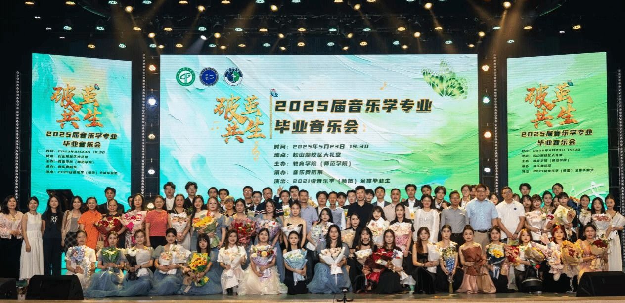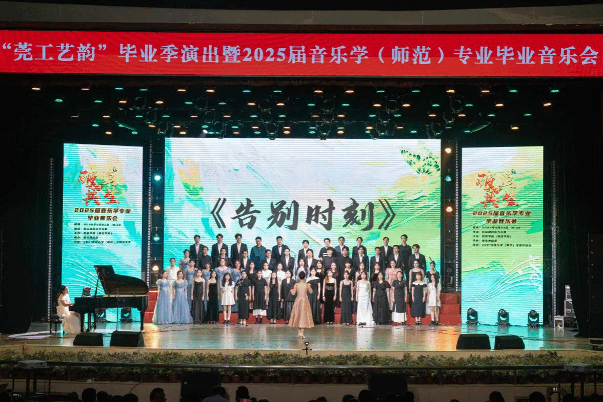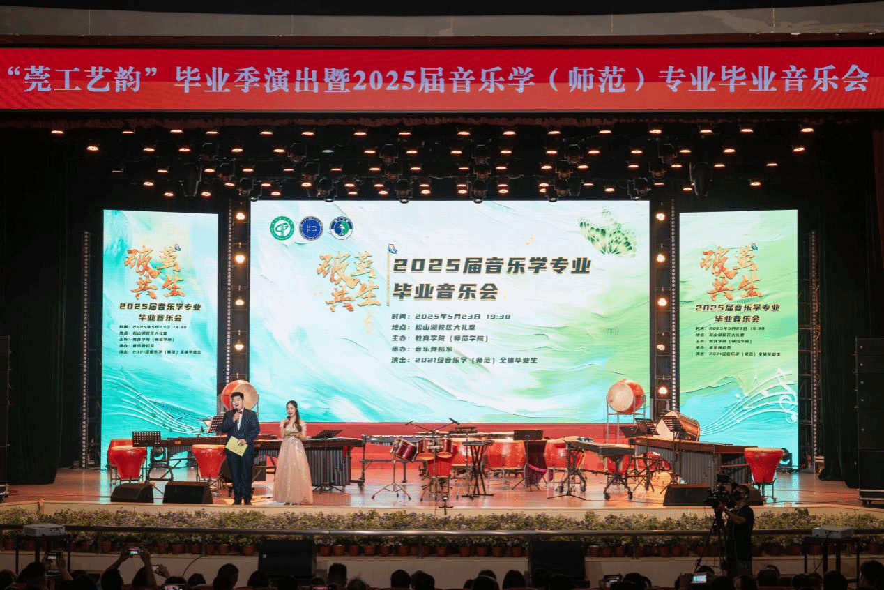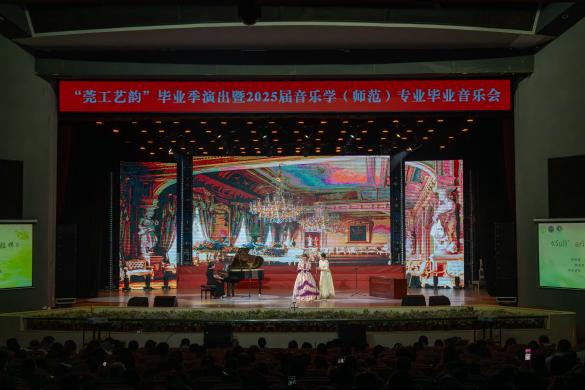 5月23日晚,学校大礼堂内流光溢彩,“破茧•共生”2025届音乐学(师范)专业毕业音乐会在此盛大举行。本场音乐会作为“莞工艺韵”毕业季的收官演出,吸引了全校师生共同参与,以音乐为媒,奏响青春破茧的勇气与对未来的期许。