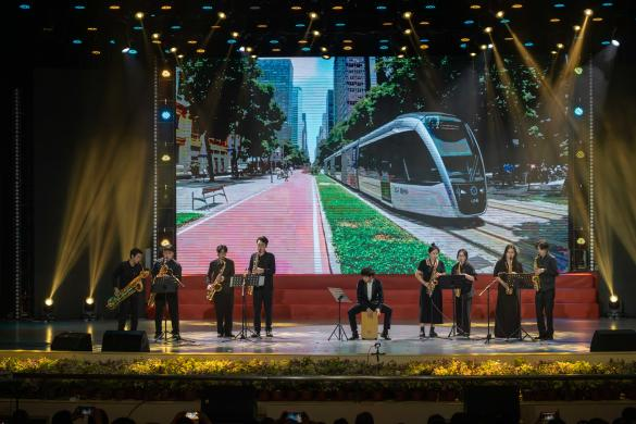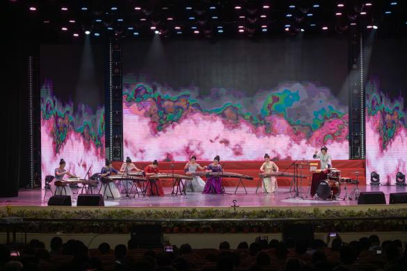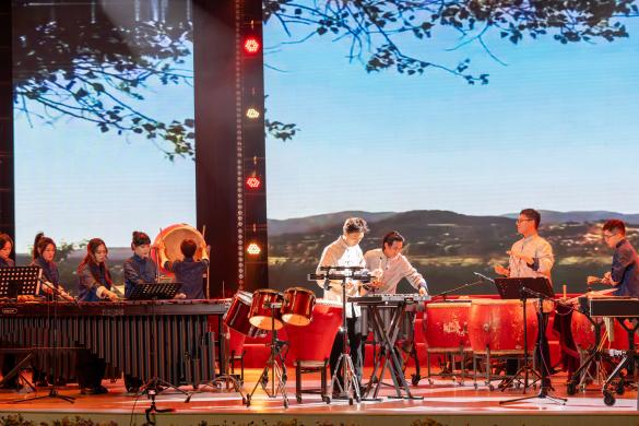 音乐会以“茧迹·向光之鸣”“破界·双翼协奏”“羽化·凌云之章”三个篇章展开,融合打击乐、独唱、器乐合奏、音乐剧等多元艺术形式,呈现传统与现代的碰撞、坚守与突破的共鸣。