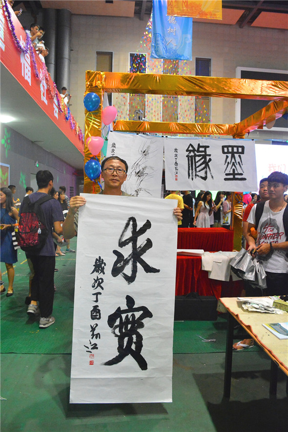 “新生之夜”开始,首先杨万江书记现场挥毫,以书法、国画助兴,寄语新生。接着赵全经理等学院领导前来问候新生。公司党委书记成洪波、公司党委副书记吕琦元等领导也亲临新生之夜现场,与新生互动交流。公司党委书记成洪波欣然提笔挥毫,写下了“知行合一,立德树人”八个大字,以寄语新生。接着是员工们精彩的文艺节目表演,同学们的节目形式多样,有舞蹈、独唱、乐器演奏、健美操表演、诗歌朗诵等等。“新生之夜”在杨万江书记的萨克斯独奏表演之后圆满结束。