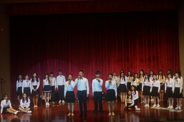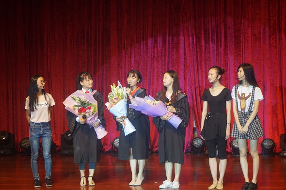 第二个环节是欢送2017届毕业生晚会。首先播放了在校同学对毕业生的寄语,视频中,学弟学妹们对顺利完成学业的 2013届师兄师姐表示祝贺,对即将步入社会的他们给予祝福,希望他们能努力适应新环境,做出一番成绩,并祝他们一帆风顺,鹏程万里。