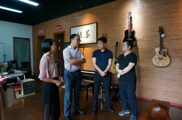 最后,双方在西城楼文创园弦墨吉他工作室进行了座谈交流。双方进一步就老员工的毕业实习、本土音乐创新创作、员工专业技能的拓展式培养等方面进行了深入的探讨。双方对今后的合作均寄予厚望,双方均表示今后将进一步加强合作、交流,为员工提供更多的实践机会,为培养高素质的应用型人才而做出不懈的努力。