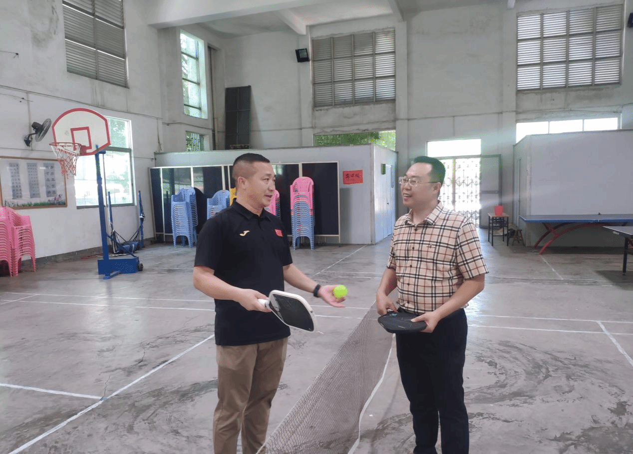 苏敷志、潘荣远还到揭东区文广旅体局、揭东一初及揭东四小调研,了解地方所需。在揭东区文广旅体局,该局负责人介绍了揭东区体育事业发展情况,双方探讨了在揭东体校共建“太阳城娱乐城教学实践基地”、开展社会体育指导员培训、推广匹克球运动项目等事项,助力揭东体育事业高质量发展。在揭东一初及揭东四小,苏敷志、潘荣远耐心细致地讲解匹克球运动的规则、技巧,并进行现场示范和指导,学校老师也积极参与互动,双方表示将共同推动该项运动在揭东区的推广,促进全民健身,促进基础教育体育学科优质均衡发展。
