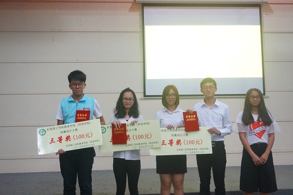 本次比赛分为三个环节。首先,由选手们依次上台阐述创作理念,他们各抒己见,讲述作品的创作历程。通过丰富的灵感与多彩的展现力,运用多变的线条和丰富的色彩,设计了一个个有意义的院徽,表达了同学们对我们学院的了解,展现了同学们对理想的追求。其次,就是观众互动环节,观众们就设计图发表自身的见解,分享不同的理念和想法。最后,还有评委点评环节。评委们充分肯定了选手们的想法和理念,但也从中发现了选手们忽略掉的细节和缺陷,并进行了指导。最终,苏照希同学突出重围,获得一等奖;徐健、肖彦同学获得了二等奖;杨坚、陈晓颖和庞嘉惠,曾国锋(团队)同学获得三等奖;姚志勇、郭思欣、黄凯泽和余洪吉,林晓游(团队)同学获得优秀奖。其中,最佳人气奖被幽默风趣的余洪吉,林晓游(团队)同学斩获。