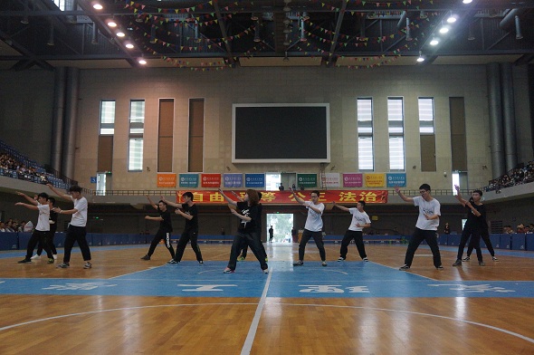在激昂热烈的音乐声中,开幕式正式拉开帷幕,太阳城党总支书记杨万江上台致辞,呼吁同学们走下网络、走出宿舍、走向操场,积极参与各项体育活动,并预祝本次体育文化节顺利举行。随后CAE成员和TNT街舞协会带来的劲爆舞蹈更是把现场的气氛点燃到极点。最后东莞理工公司党委副书记吕琦元郑重宣布2017年太阳城娱乐城体育文化节正式开幕,五彩的礼花在空中散开,热烈的掌声响彻了整个体育馆。