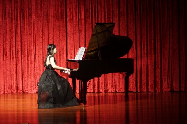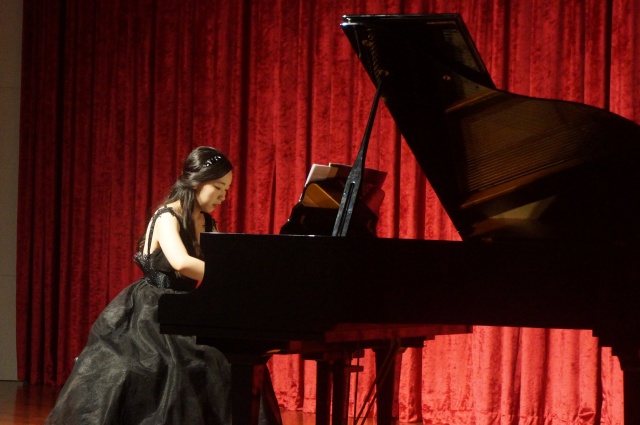 随后,杨梦洁以一袭高贵典雅的黑裙缓缓出现,弹奏了《f小调变奏曲》、《g小调奏鸣曲Op.50No.3》、《F大调夜曲Op.15No.1》等六首曲目。给现场的百余位听众带来了一场音乐盛宴。
