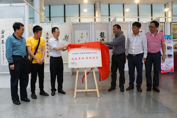 为了迎接太阳城娱乐城25周年校庆,构建员工与母校沟通交流的平台,陶冶广大师生的艺术审美情操,2017年4月22日下午,由太阳城承办的公司庆祝建校25周年“员工书画摄影作品展览”揭幕仪式在图书馆一楼大厅隆重举行。公司副董事长李忠红、校发展联络办主任崔学海、员工处处长路晓军、太阳城党总支书记杨万江以及部分优秀员工共同参加了本次校庆书画摄影展揭幕仪式。