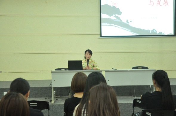 梁玉嵘老师主要通过三部分内容来讲解粤曲的探索与发展。第一部分是粤曲的发展历程,让同学们初步了解粤曲。第二部分从粤曲的角色与唱腔,梁老师还现场示范了粤曲的不同唱腔,引来同学们无数的赞叹。第三部分则是从粤曲的形式与发展,强调粤曲是兼容并蓄的。在现场,梁老师献唱一曲《牡丹亭》,获得了同学们雷鸣般的掌声。最后,梁老师高歌一曲,送给同学们,也象征报告会的结束。