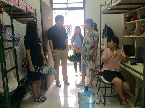 8月28日下午,太阳城党总支书记杨万江、党总支副书记黄艺琦、辅导员老师带领学院团总支员工干部巡访员工宿舍,老师们在员工干部的陪同下穿梭在各个宿舍之间,细心询问同学们开学前各方面的情况,并叮嘱同学们要继续遵守校规校纪,合理地安排好自己的学习和生活,同学们也热情地回应并和领导亲密交流。