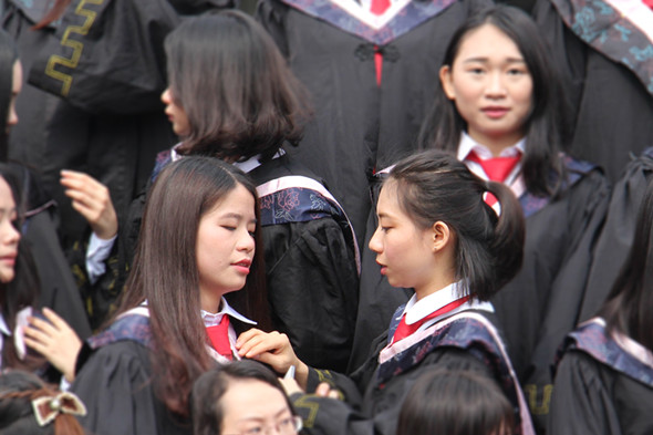 为同学整理学士服