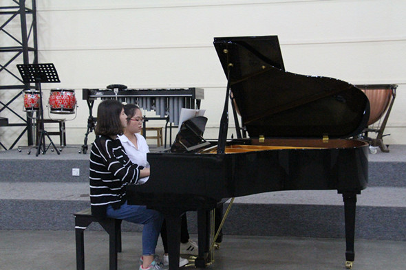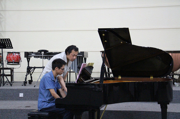 黄琼老师简单的开场白后,授课开始,辛欣教授的授课方式是让几位同学上台演奏曲目,有独奏的同学,也有四手连弹,辛教授在每位同学演奏完后都带头鼓掌,这不仅是尊重了员工,同时也让同学们更加地钦佩他。每一个同学演奏完,辛教授都会进行点评,并问及同学弹奏时的感受以及对作品的了解,而后指出同学所演奏曲目的不足之处,并做示范手把手的教同学们如何弹奏能使作品展现得更美妙。他还指出了同学们平时练习时所存在的一些问题,希望同学们能改掉一些不太好的练习习惯。辛教授的言语时而严肃、时而幽默,整个课堂生动活泼,同学们听得更是认真。