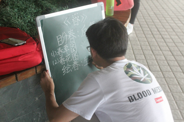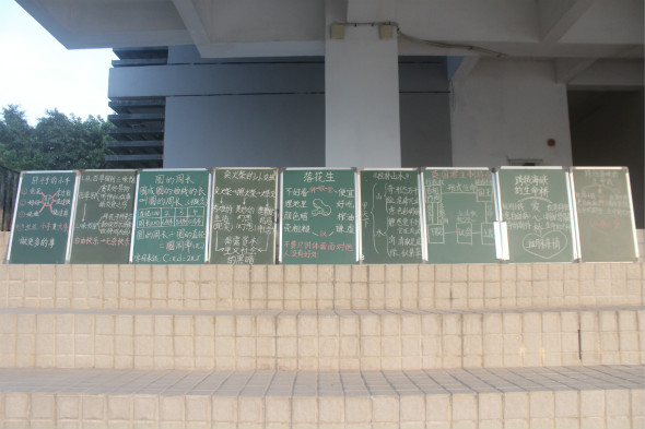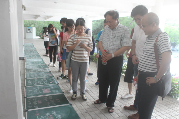 23号下午,师范学院之“师范生粉笔字比赛”在莞城校区图书馆前火热进行,参加此次比赛的有15级全体师范生,担任本此比赛的评委有师范学院书法老师张锡麟老师、师范学院小学教育语文专业负责人梁兴源老师以及师范学院辅导员袁志军老师。