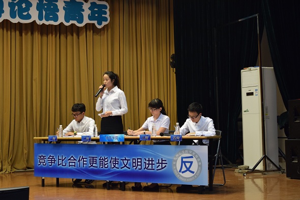 正方学院的一辩从人们的衣、食、住、行四方面的改善为切入点,用通俗幽默的快板式语言陈述己方“合作比竞争更能使文明进步”的观点。反方师范学院则从人与自然、人与社会的矛盾出发,进行层层剖析,论证己方“竞争比合作更能使文明进步”的观点。在随后的攻辩环节中,双方更是争锋相对、步步紧逼,现场气氛迅速升温,达到白热化阶段。