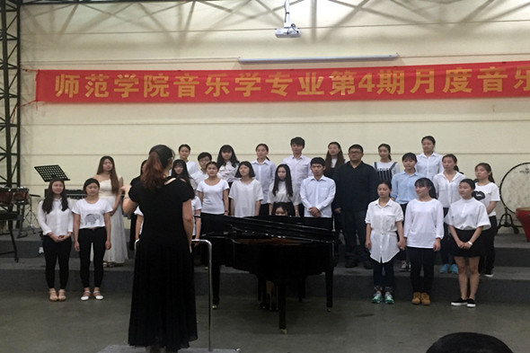 2016年4月14日晚,师范学院在艺术楼演奏厅举办了第四期月度音乐会。师范公司党总支书记杨万江、副经理琚丹红、音乐学专业负责人黄琼以及汪莹、史旻、谭敏、丁雪、颜乐、杨艳、林雄文、谭潇潇等音乐专业老师出席了音乐会。全院的音乐学专业员工参加了音乐会。