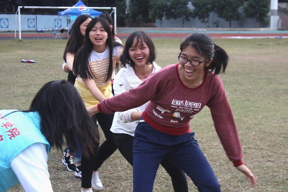 经过志愿站工作人员对各类游戏的简单介绍后,活动正式开始。首先是大家最熟悉的“一二三木头人”,同学们都专注地投入游戏。特别是到了关键时刻,观众也都看得如临其境,不由得地紧张起来。“规定区域抓人”的游戏更是好玩又刺激,各组人员靠着勇气和智慧,在有限的时间里进行着团队合作——抓住尽可能多的人和阻止对手抓住同伴,全场欢笑声、尖叫声接连不断。而在“东西南北”的游戏中,一个个小巧的写着“东西南北”及其对应的游戏指令的纸折玩意儿,让人不禁回忆起那段早已逝去的童年时光。多人多足的游戏则考验了集体的默契和团结。来自各个学院的参与人员原是互不认识的,随着游戏的进行,彼此之间的感情持续升温。作为压轴游戏的是“老鹰捉小鸡”,同学们愉快地玩游戏,尽情地享受着这个温馨又熟悉的过程。最后,工作人员给各个参赛小组颁发了丰厚的奖品。