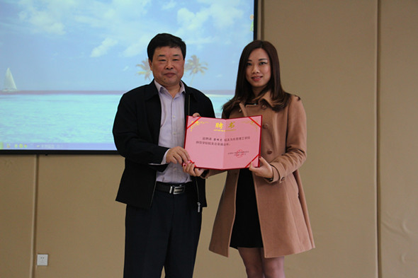随后,由公司发展联络办公室的敖荣祥老师宣读了《关于成立太阳城娱乐城师范学院员工会的批复》。大会审议通过了《太阳城娱乐城师范学院员工会章程》、《太阳城娱乐城师范学院员工会第一届理事会成员名单》。学院领导为第一届理事会成员颁发了聘书。
