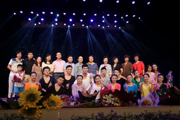 晚会结束后,2012级群众文艺班的全体同学集体上台谢幕,并与老师们合影留念。晚会在一片温馨而又难舍难分的气氛中圆满结束。