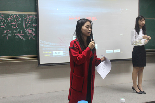 11月30日晚上,师范学院辩论赛半决赛在莞城校区3407课室举行。本次比赛邀请了14级工商管理学院的辩论队队员蔡炜、梁雪亮担任评委。15汉师班和15小教语文班分别代表正方和反方就“网络文学是否有利于现代文学的发展”展开激烈的辩论。