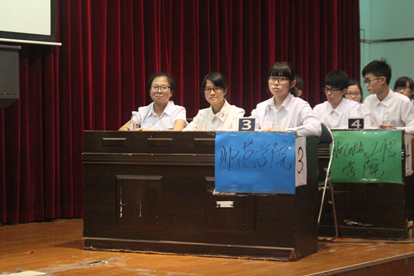 现场比赛气氛活跃,激昂澎湃,无论是参赛选手的“高手过招,连声叫好”,还是观众互动环节的“满无虚座,一呼百应”,都让理性与感性完美地碰撞出了火花。本次比赛共有5支代表队出赛,每队选手都在比赛中表现得淡然自若,胸有成竹,其中师范学院“我心有理”代表队更是过关闯将,无所畏惧,在自由抢答环节充分发挥稳准狠的竞赛水准,虽然最后没能以高分获胜,但选手们的精彩表现已让人十分敬佩。