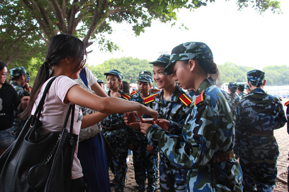 为了让新生感受到师范学院的温暖,营造一个相互关爱的的氛围,9月20日下午,师范学院团总支、员工会的干部齐聚莞城校区,为2015级的军训新生送去爱心糖水。