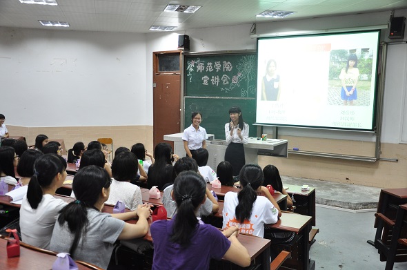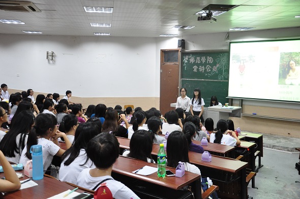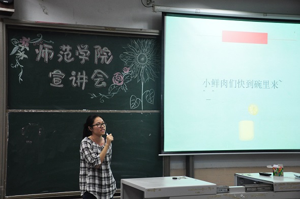 在宣讲会上,首先,由主持人介绍师范学院的主席、副主席及书记并用一个小视频对师范学院员工会团总支做了简要说明。接着由十三个部门的部长运用视频、PPT等各种方式对自己所在的部门进行了更加详细的阐述。最后由新生与员工会干部就报名参加团总支员工会、大学如何度过等问题做了积极互动。