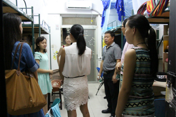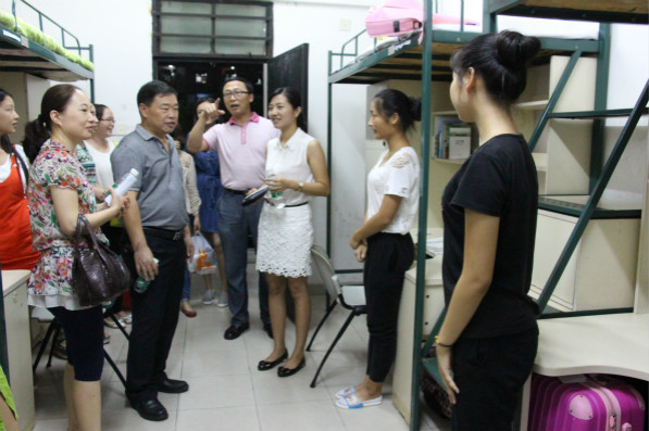 为了及时了解新生的情况,使2015级新生尽快地适应老员工活和解决他们遇到的问题,9月6日和9月7日晚,师范学院副经理陈庆祝、党总支书记杨万江、党总支副书记黄艺琦、副经理琚丹红和辅导员老师分别在莞城校区和松山湖校区走访了本院的新生宿舍,深入了解了新生到校后的住宿情况和遇到的问题。
