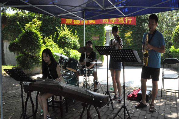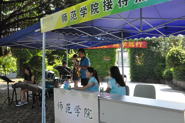师范学院为了更好地展示自身风采,在师范学院正门处设立了乐队,进行了现场才艺演出。一首悠扬感人的古典歌曲刚吸引住路人驻足细听,紧接着充满动感的快歌又牵引着欣赏者的心。一连串精彩的表演引起路人对师范学院的关注,大家纷纷放慢脚步,细细感受音乐的魅力。